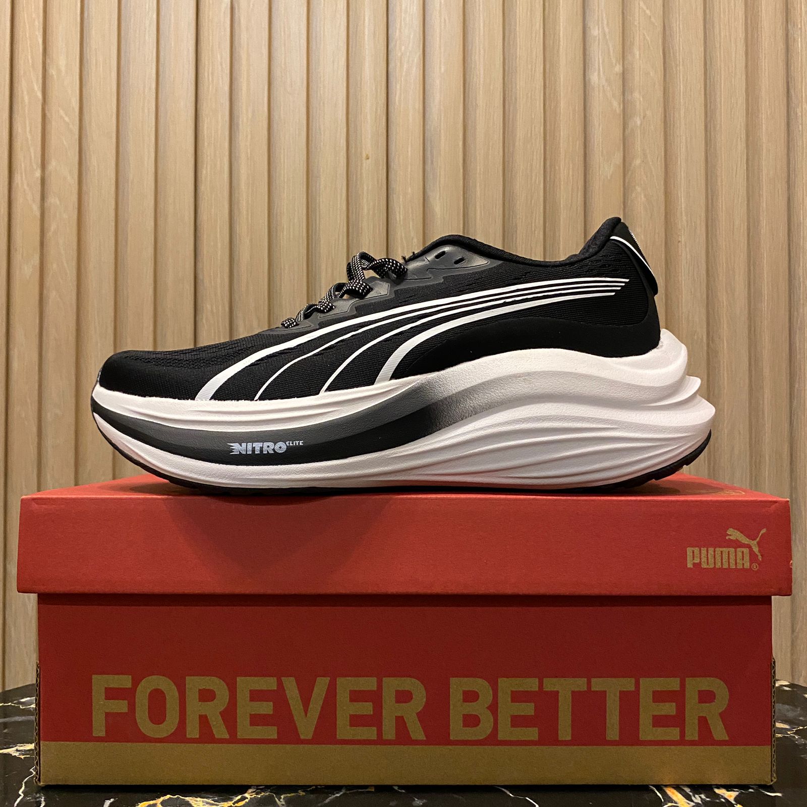 Its engineered mesh upper provides excellent breathability and a secure fit, while the PUMAGRIP rubber outsole ensures traction across all surfaces — from road to treadmill. The PUMA Nitro blends performance innovation with modern design, giving runners of all levels a perfect balance of speed, support, and style.